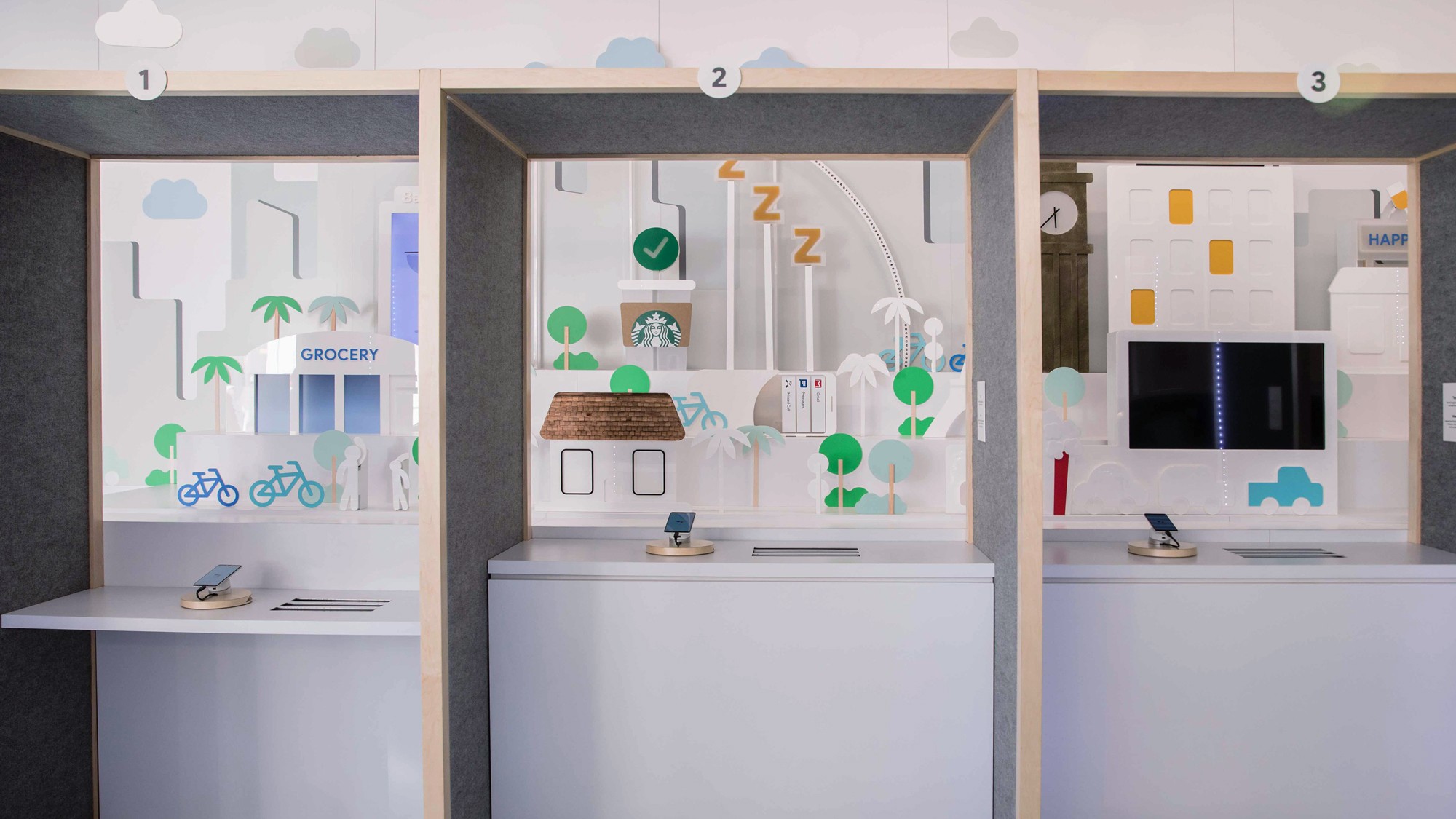 In this 35' interactive diorama, users explore how Google Assistant can help while they’re on the go. In various vignettes, users see how Assistant can perform common everyday tasks, like booking a Lyft, checking into a flight, or booking a hotel room.