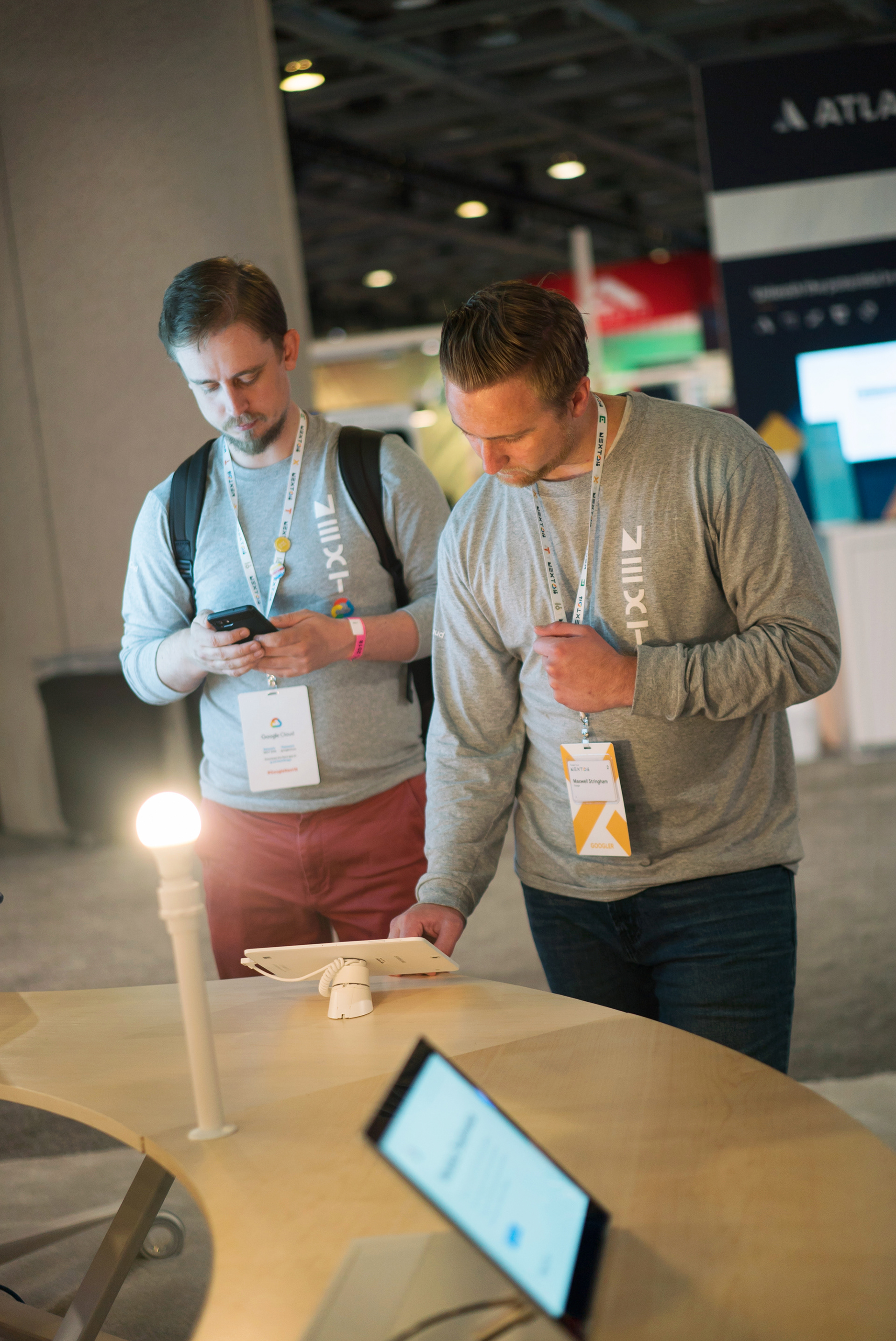 Attendees become employees of the “Light It Up” company, which is developing an app to manage smart light bulbs. There are five different roles an attendee can choose from and three different devices the attendees can use to complete their task: mobile, tablet, and desktop. As each attendee completes a task by watching video demos of product features, lights begin to shine. After the entire team completes all tasks, the entire light bulb above illuminates.